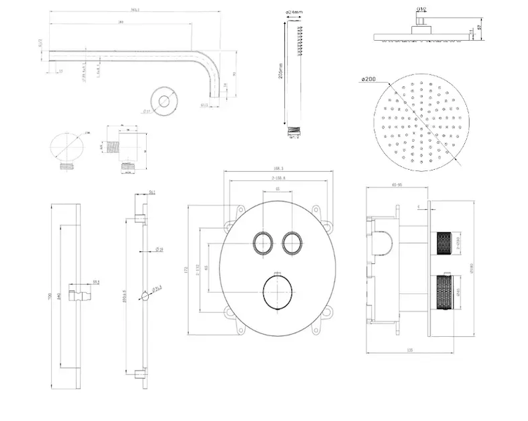 horní sprchu 200 mm se sprchovým ramenem 350 mm
