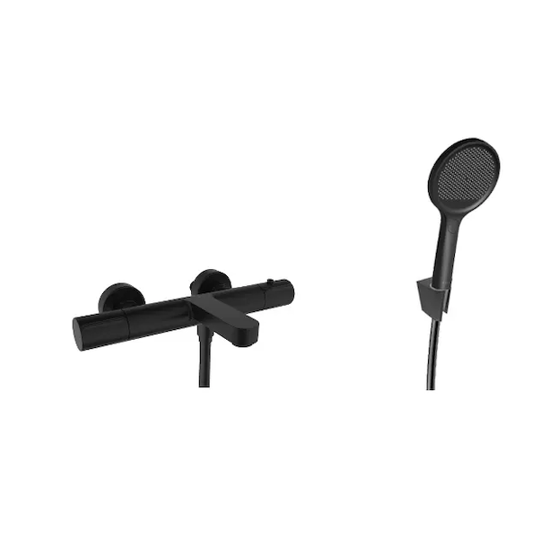 kielle Oudee - Termostatická vanová baterie s příslušenstvím EcoSpare, matná černá 10302SNT104