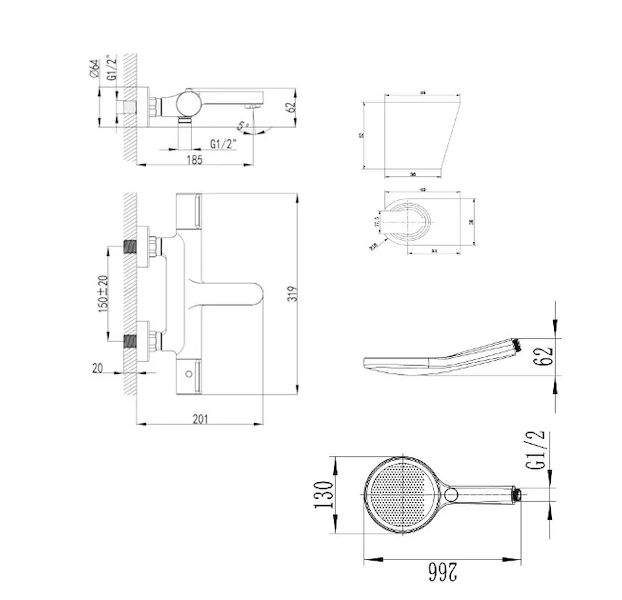 nástěnný držák sprchy