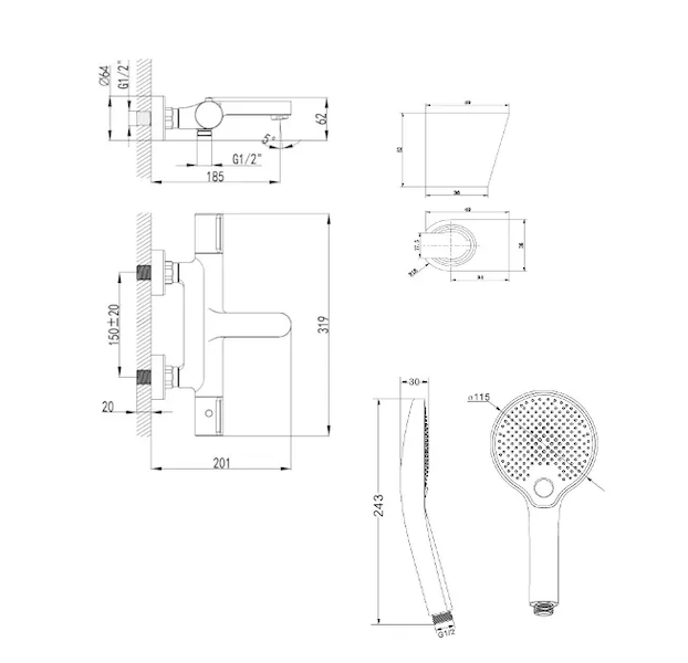 nástěnný držák sprchy