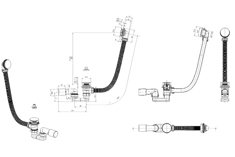 kielle - Vanová odtoková a přepadová souprava Click-Clack, délka 1000 mm, matná černá 116010114 Skladem u dodavatele > 10 ks |
