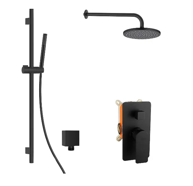 kielle Vega - Sprchový set s baterií pod omítku, pro 2 spotřebiče, s příslušenstvím EcoSpare a tělesem, matná černá 20618SP64