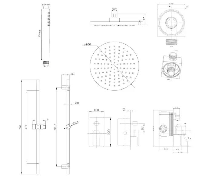 horní sprchu 200 mm se sprchovým ramenem 350 mm