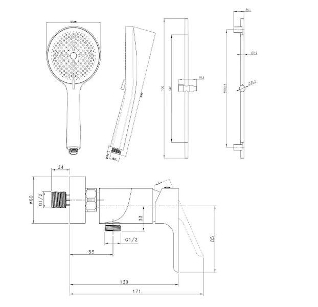 kielle Vega - Sprchový set s baterií, tyčí, hadicí a sprchovou hlavicí EcoSpare, chrom 20618SN20 Skladem u dodavatele > 10 ks |