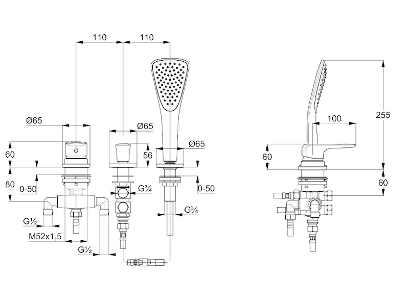 - montáž na základní těleso pro baterii na okraj vany, není součástí balení