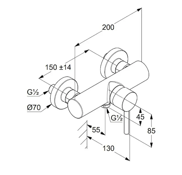 - rozteč připojení 150 mm