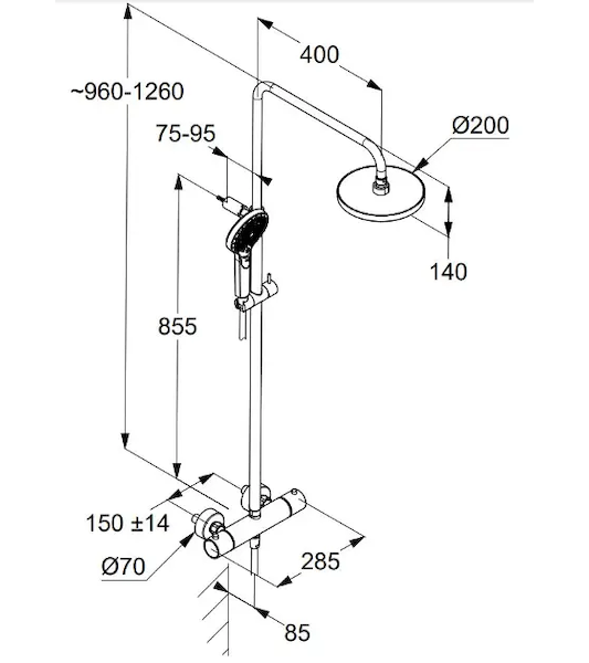 - sprchová tyč s výškově nastavitelným ramenem