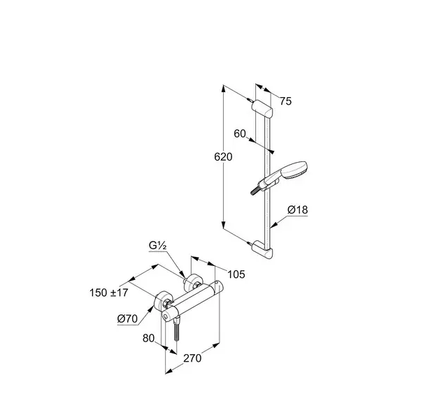 - nástěnná termostatická sprchová baterie Kludi Basic DN 15