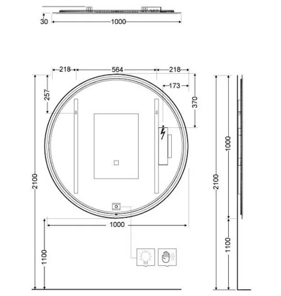 Kludi Luma - Zrcadlo s LED osvětlením a vyhříváním, 100x100 cm, dotykový senzor 17SP0300
