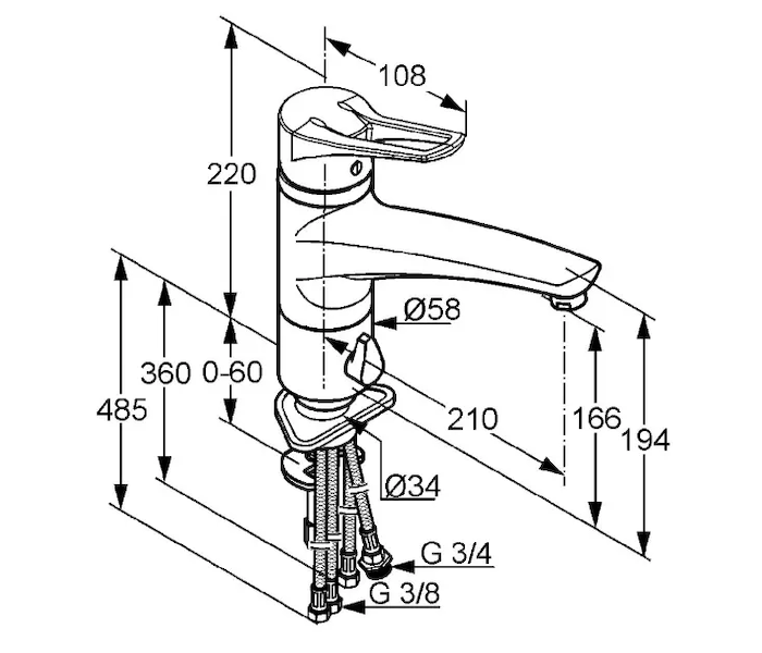 - flexibilní přípojky G 3/8