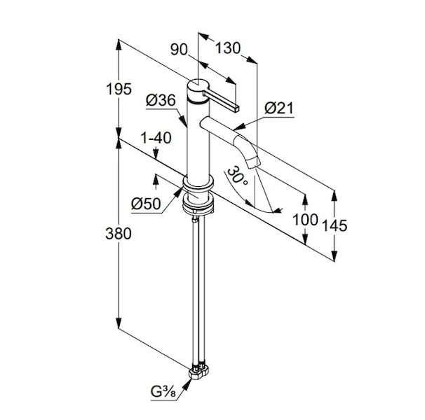 Stojánková umyvadlová baterie, bez výpusti