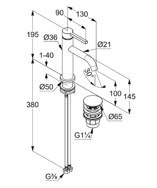 Umyvadlová baterie Pura, s výpustí