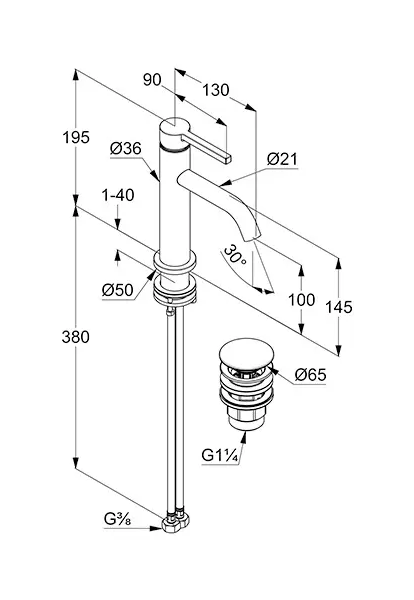 - délka výtoku: 130 mm