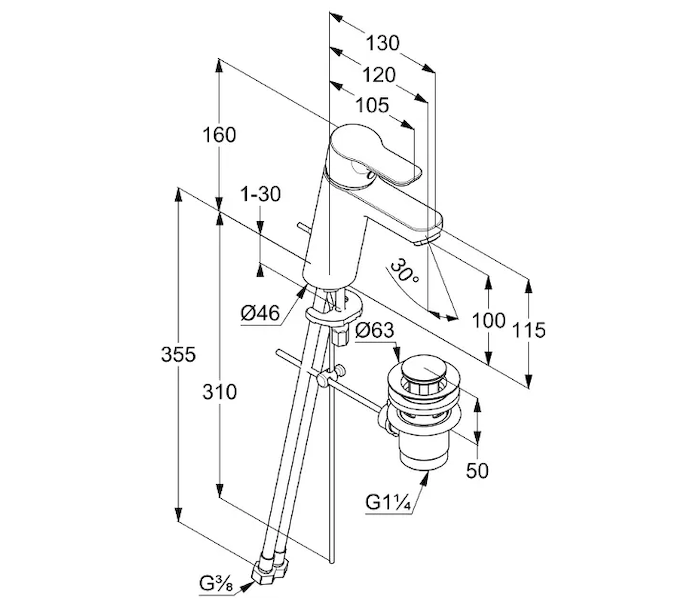 - flexibilní přípojky G 3/8