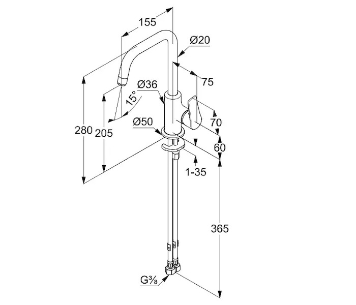 - flexibilní přípojky G 3/8