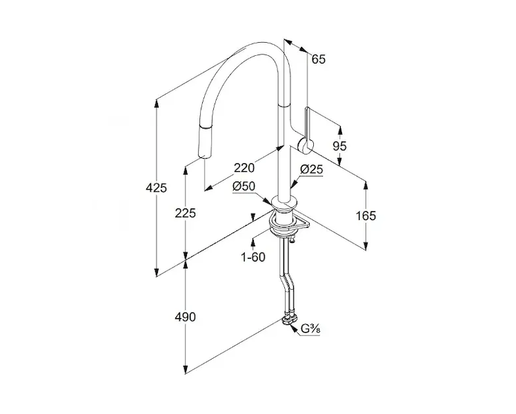 - s výsuvnou sprškou (hadice 250 mm)