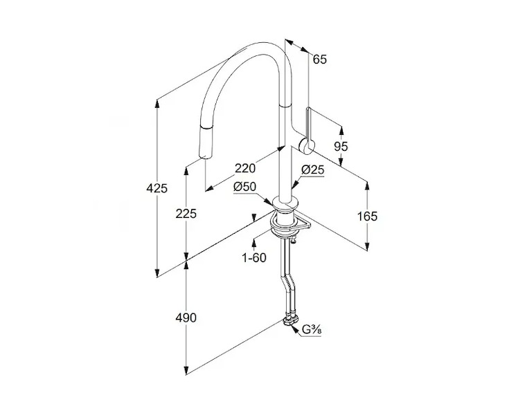 - s výsuvnou sprškou (hadice 250 mm)