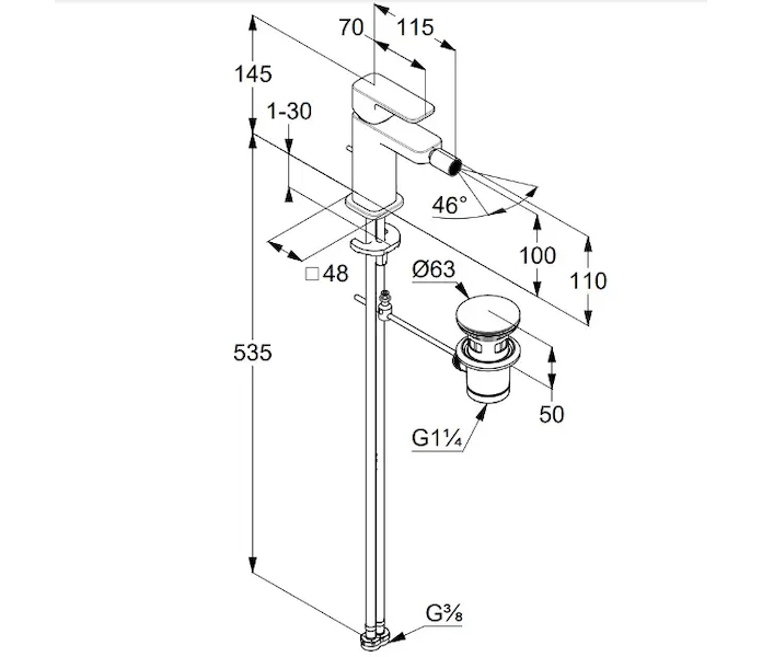 Stojánková bidetová baterie s výpustí