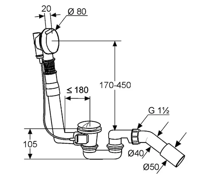 - výška vodního sloupce zápachové uzávěry: 50 mm