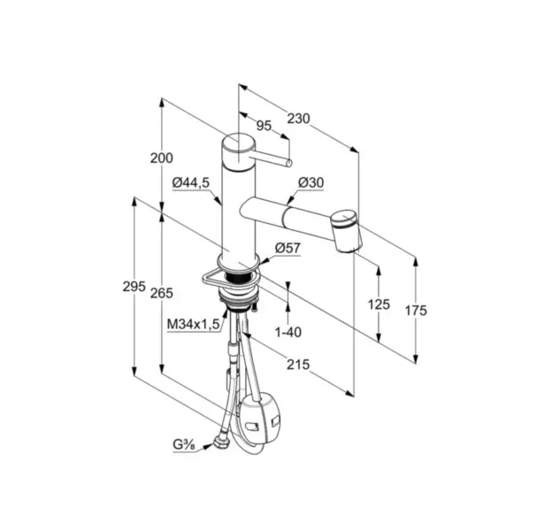 - flexibilní přípojky G 3/8