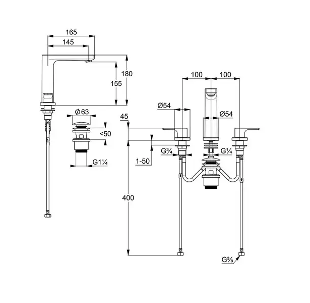 Tříotvorová umyvadlová baterie