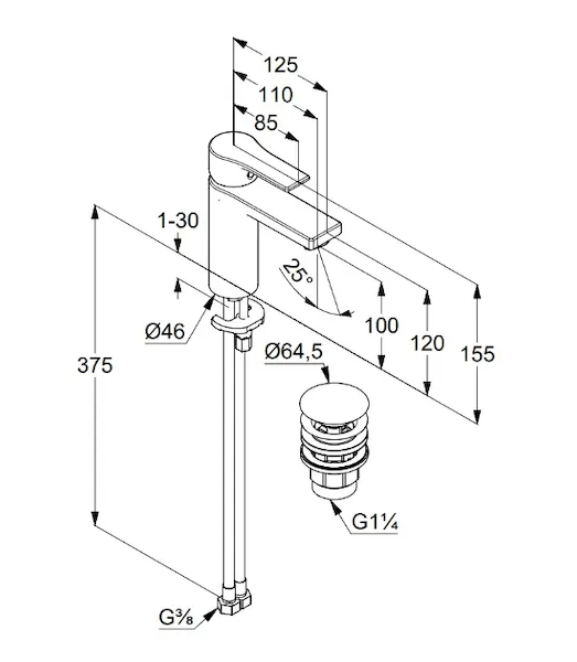 Kludi Zenta SL - Umyvadlová baterie s výpustí Push-Open, matná černá 482983965