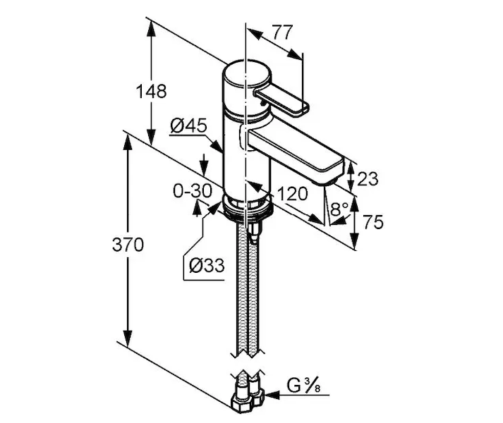 - flexibilní přípojky G 3/8