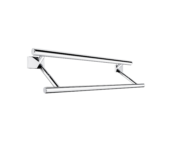 Držák na ručníky dvojitý. Délka 505 mm. Vnitřní šíře pro ručníky 400 mm. Materiál mosaz / chrom.
