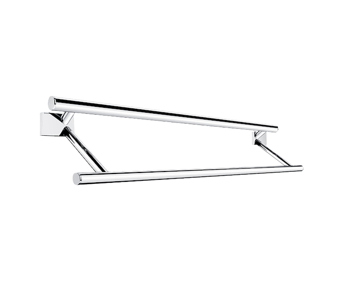 Držák na ručníky dvojitý. Délka 605 mm. Vnitřní šíře pro ručníky 500 mm. Materiál mosaz s povrchovou úpravou chrom.