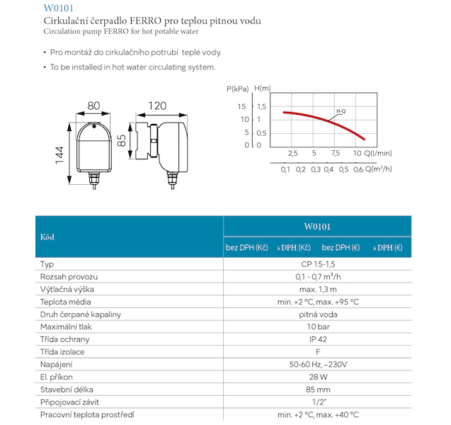 Novaservis Cirkulační čerpadlo pro teplou vodu 0101W