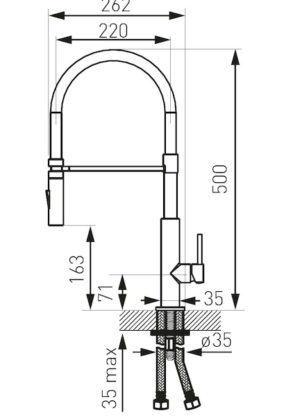 Kvalitní a odolná keramická kartuše 25 mm s prodlouženou zárukou 5 let. Prvotřídní chromové provedení. Stojánková dřezová baterie s výškou 51 cm a délkou 22 cm s elastickým ramenem se sprškou. Součástí baterie jsou přívodní hadičky.