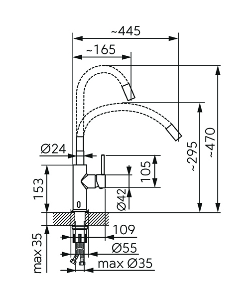 - Dosah výtokového ramene [mm]: 165 - 445
