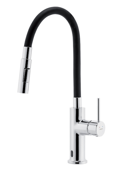Objevte Ferro Distanza, kuchyňskou baterii nové generace. Bezdotykový senzor pohybu spustí vodu pouhým gestem – a přitom můžete stále používat klasickou páku pro přesné nastavení průtoku a teploty.