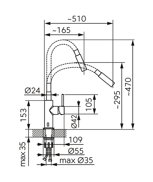 Novaservis Dřezová senzorová baterie s flexi ram. Distanza, černá-chrom BDZ4B