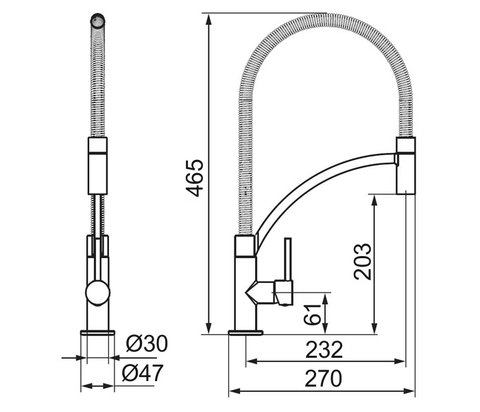 Kvalitní a odolná keramická kartuše 25 mm s prodlouženou zárukou 5 let. Prvotřídní chromové provedení. Stojánková dřezová baterie s pružinovým ramenem. Součástí baterie jsou přívodní hadičky.
