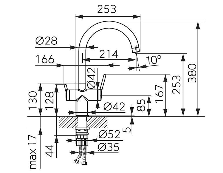 - Výška odtoku vody [mm]: 253