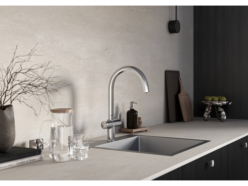 Její pevné kovové a otočné ramínko zajišťují pohodlné používání v každé kuchyni – od klasické po moderní. Čisté linie, lesklý chrom a precizní zpracování podtrhují nadčasový styl, který z kuchyně dělá nejen funkční, ale i elegantní prostor.