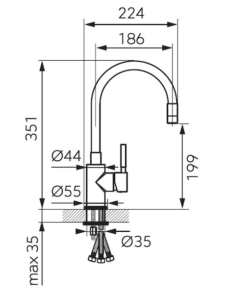 - Dosah výtokového ramene [mm]: 150-350