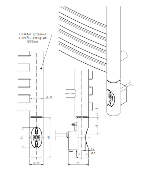 - elektrická topná tyč s elektronickou regulací a LED displejem
