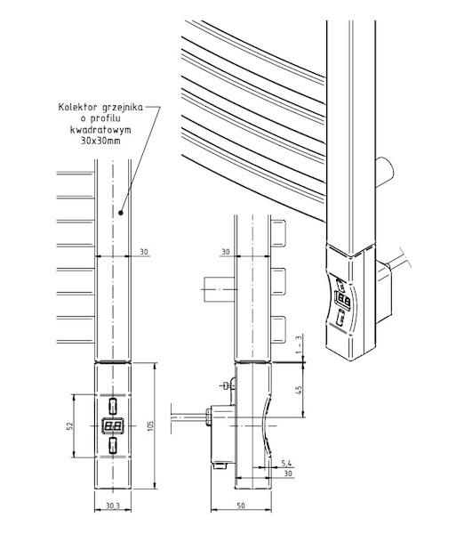 - elektrická topná tyč s elektronickou regulací a LED displejem
