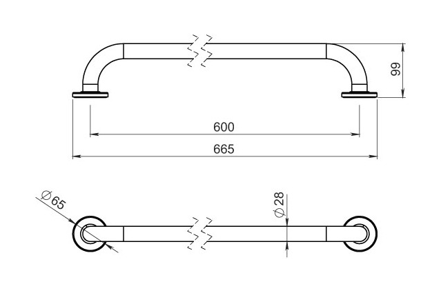 Novaservis Madlo rovné 600 mm s krytkami kartáčovaná nerez R6661,4