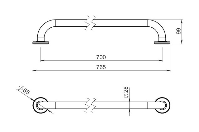 Novaservis Madlo rovné 700 mm s krytkami kartáčovaná nerez R6670,4