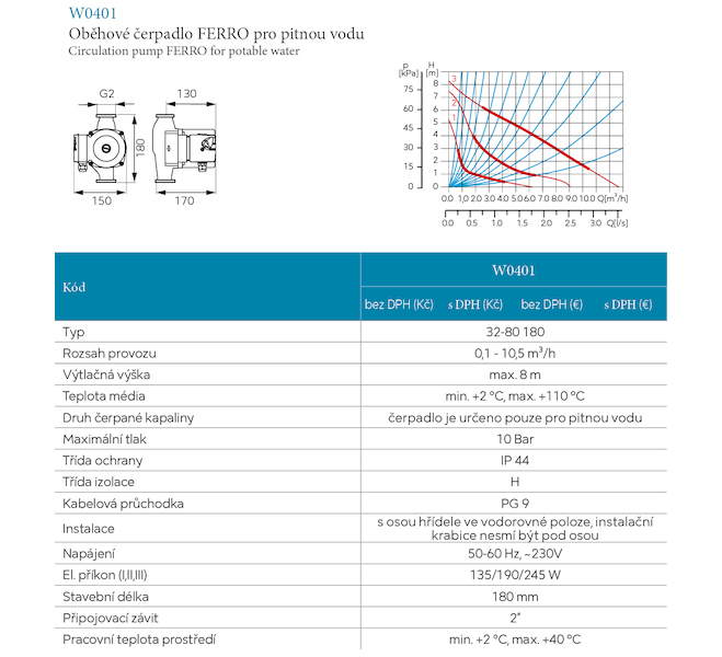 Novaservis Oběhové čerpadlo FERRO pro pitnou vodu 0401W
