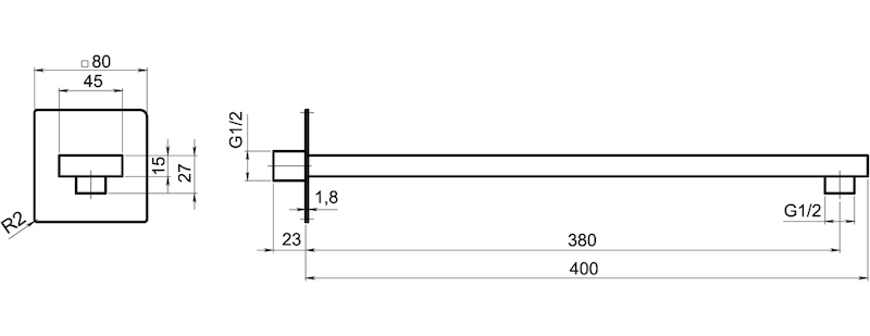 Novaservis Rameno pevné sprchy hranaté ze stěny 400 mm chrom RAM405,0