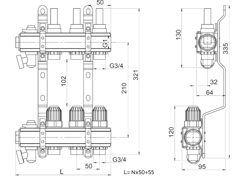 Rozdělovač je možné doplnit čerpadlovou sestavou GM40GPA a kulovými kohouty KFPS3
