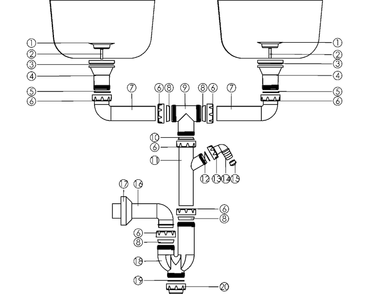Novaservis Sifon dřezový na dvojdřez 49mm bez přepadu plast NSP22