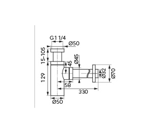 Celokovový černý sifon s 5/4 "závitem. Určený pro baterie s uzávěrem výpusti. Průměr odpadu 32 mm.