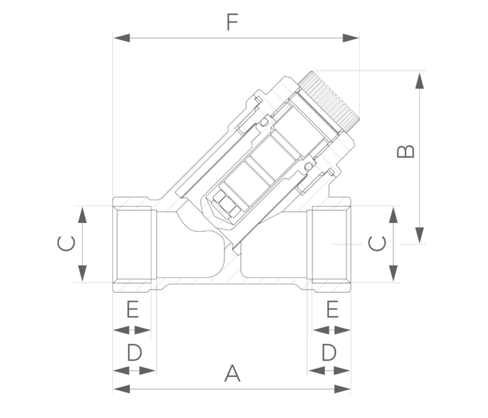 Šikmý mosazný „Y“ filtr.
