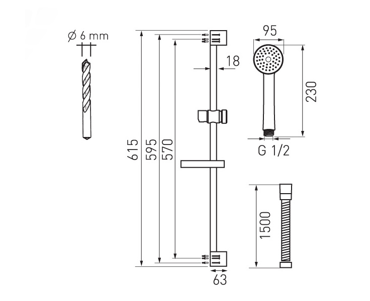 kovovou hadici 150 cm a plastovou mýdlenku.