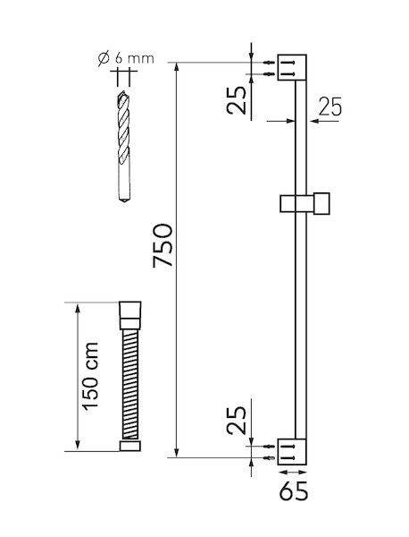 Sprchová souprava černá-mat pro sprchové baterie obsahuje 3-polohovou ruční sprchu s průtokem max vody 6 l/min, posuvný držák sprchy v délce 780 mm a kovovou sprchovou hadici s anti-twist v délce 150 cm.